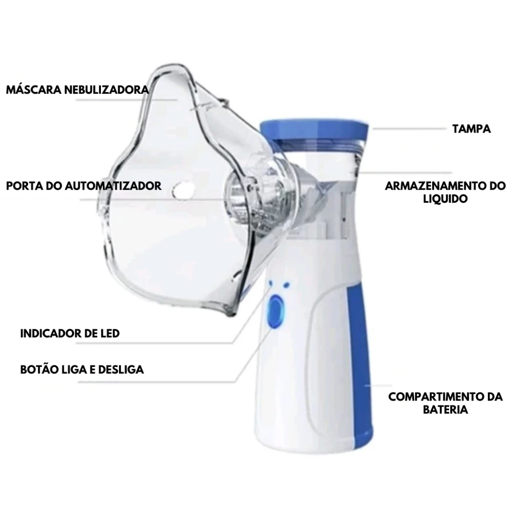 • Portabilidade Extrema: Leve e compacto, este dispositivo pode ser facilmente transportado, garantindo que você tenha tratamento respiratório sempre à mão.